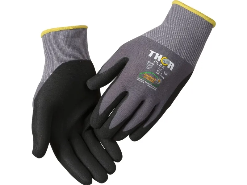 Nitrilhandske med fingertoppar, THOR Flex, 6, svart, nitril/polyester - (12 st)