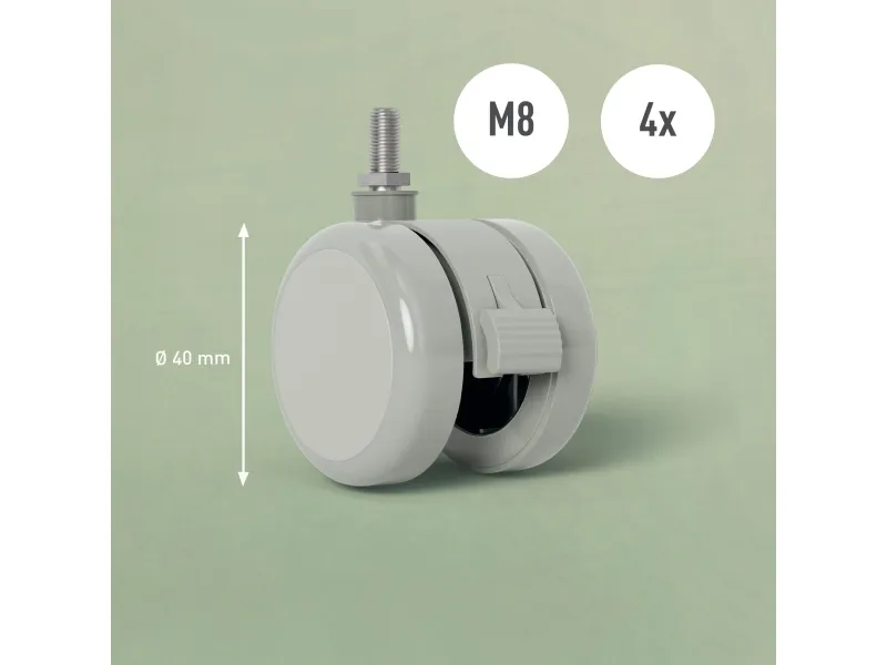Leitz Låsbara hjul för Ergo Elektriskt Höj- & Sänkbart Skrivbord (65340001), Grå, 4 cm, 40 mm, 40 mm, 80 mm, 4 styck