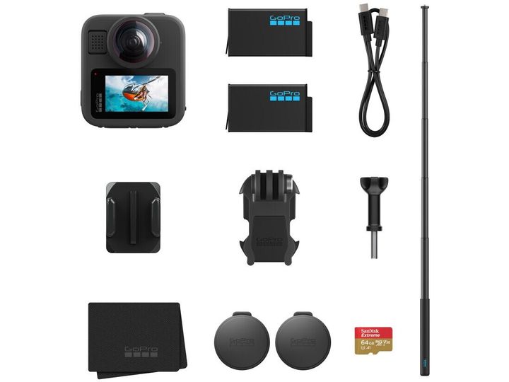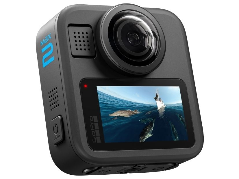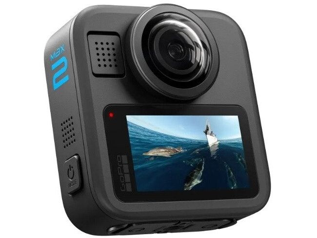 Kameran är utrustad med GoPro Enduro-litiumjonbatteri, vilket garanterar lång batteritid. Med sex rundupptagande mikrofoner med vindbrusreducering blir varje ljuddetalj klar och tydlig. Den avancerade elektroniska bildstabilisatorn, Max HyperSmooth, garanterar jämna bilder, även under svåra förhållanden. Med stöd för 8K-HD-video och ett vidvinkelobjektiv med en bländare på f/1,8 fångar GoPro MAX2 hisnande bilder, oavsett om det är i rörelse eller stillbild.