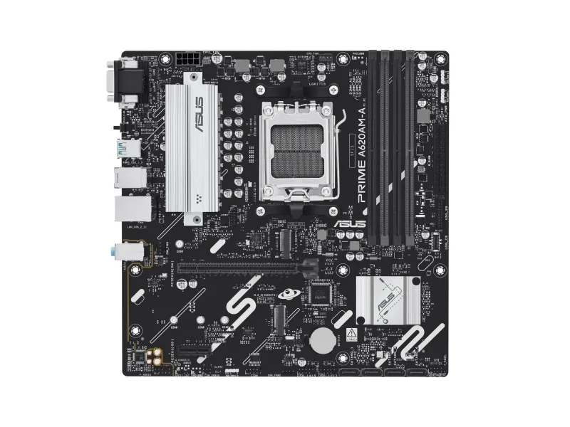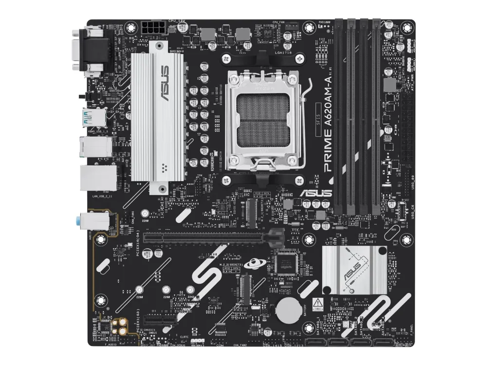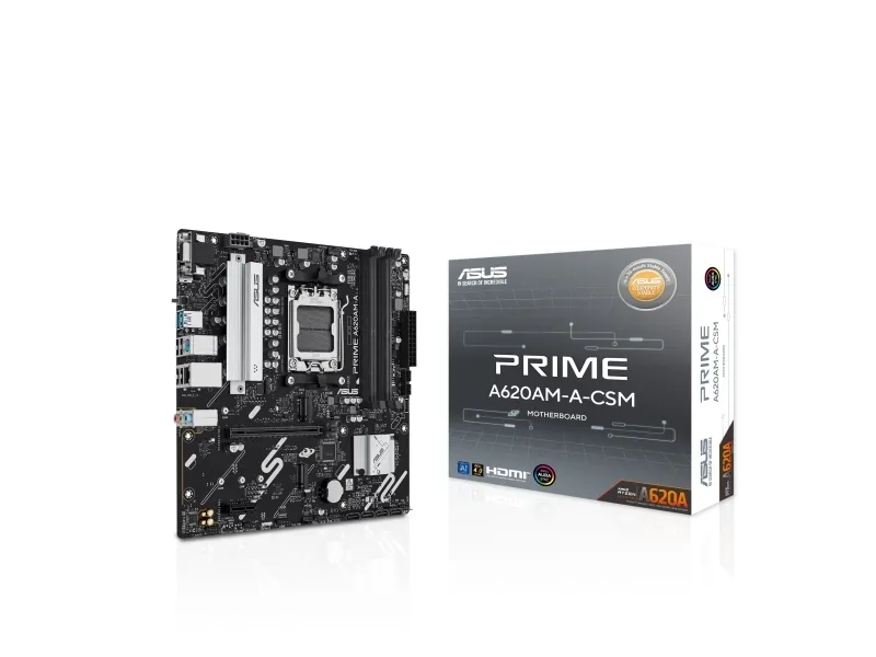 ASUS PRIME A620AM-A-CSM - Moderkort - micro ATX - Socket AM5 - AMD A620A Chipuppsättning - USB-C 3.2 Gen 1, USB 3.2 Gen 1, USB 3.2 Gen 2 - Gigabit LAN - inbyggda grafiken (CPU krävs) - HD-ljud (8 kanaler)