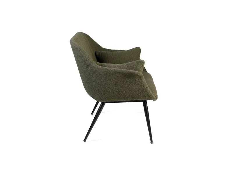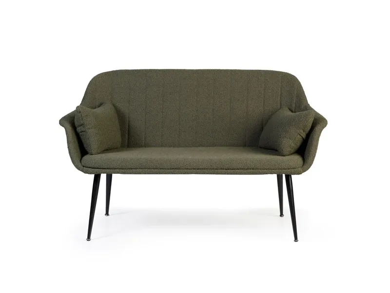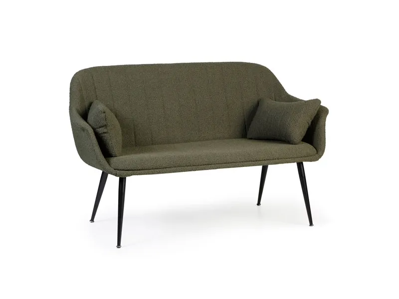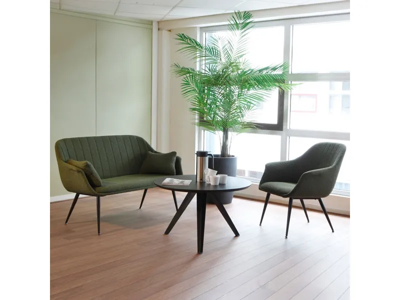 Amicus sofaen er en indbydende sofa med to hynder. Sofaen kommer med grønt stof og passer godt i receptionen eller anden social zone. Sofaen har sortlakerede stålben. Serien indeholder også en lounge stol.