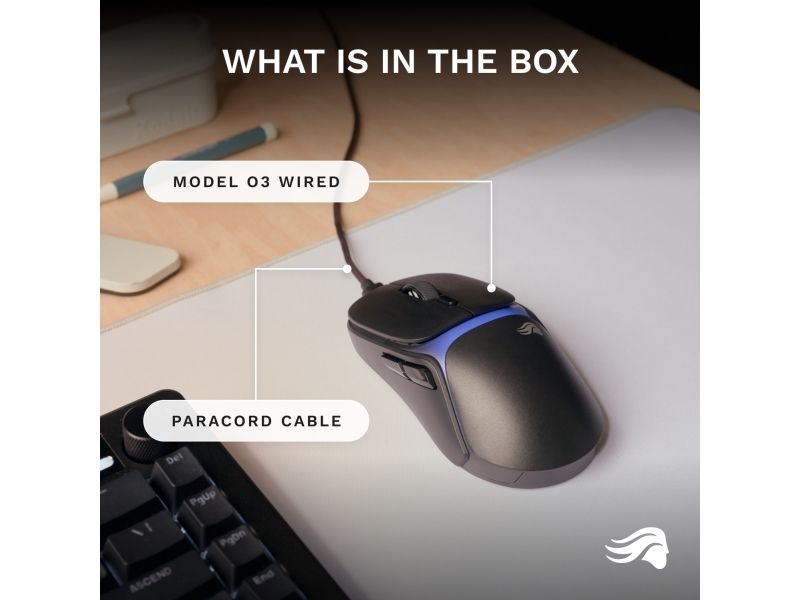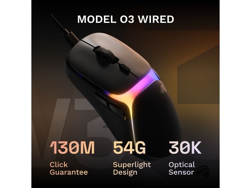 Glorious Gaming Model O3 trådbunden, högerhänt, optisk, 30000 dpi, svart