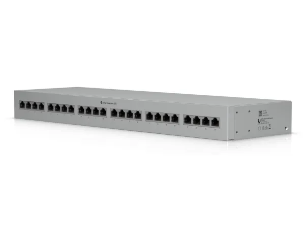Enheten har 24 RJ-45-ingångar och utgångar och stöder Power over Ethernet (PoE++) för strömhantering. Med en urladdningsströmkapacitet på upp till 20 kA och en maximal spänning på 600 V skyddar den anslutna enheter mot överspänning. Ubiquiti UniFi Ethernet Surge Protector är idealisk för att upprätthålla integriteten hos kritiska Ethernet-anslutningar och säkerställer att ditt nätverk förblir starkt och stabilt.