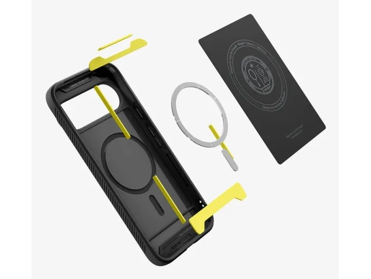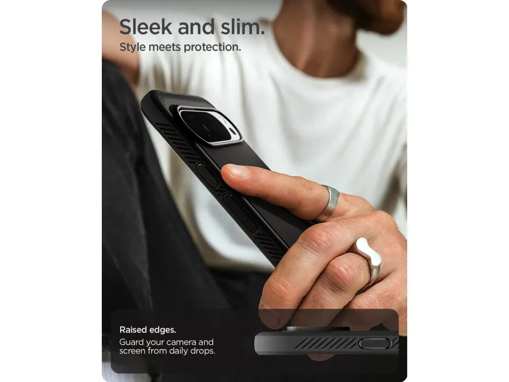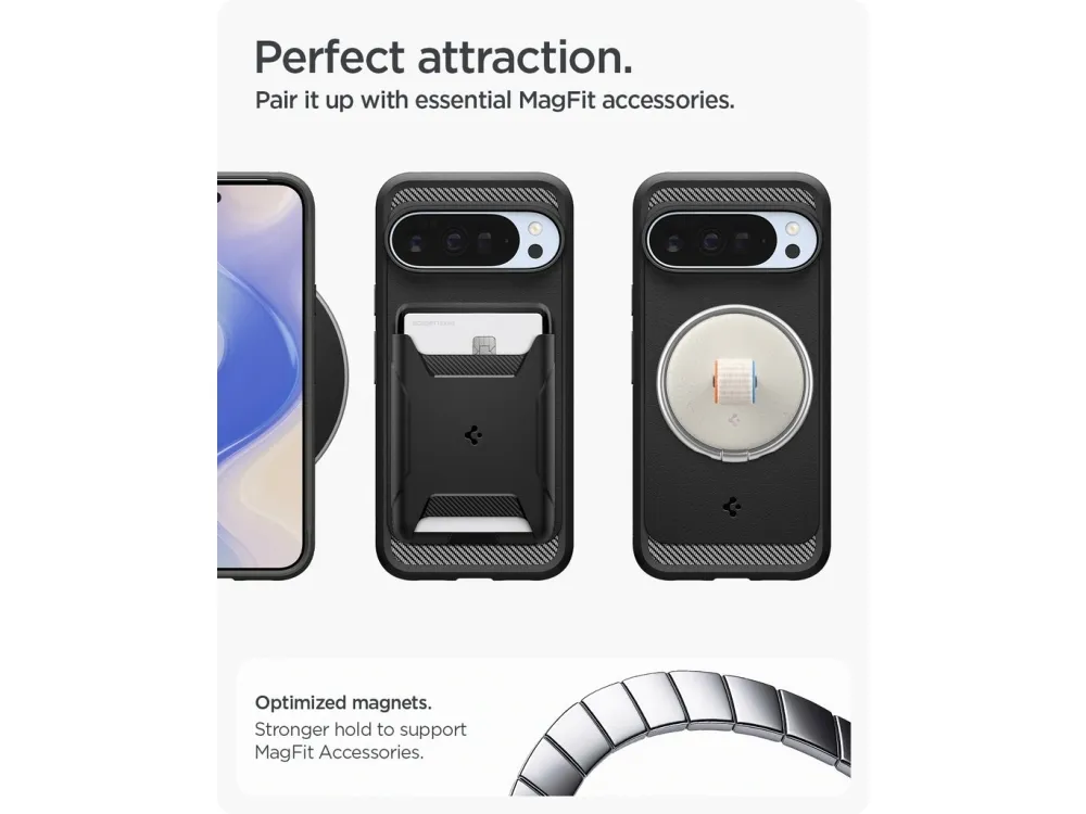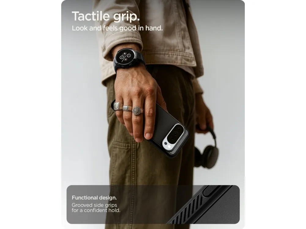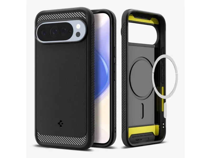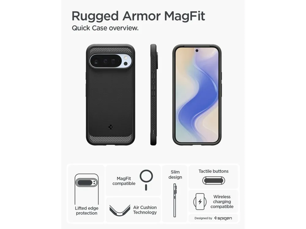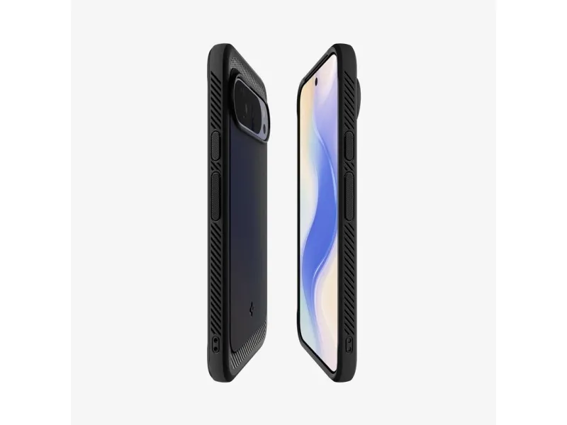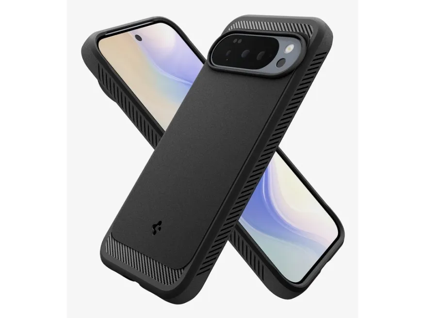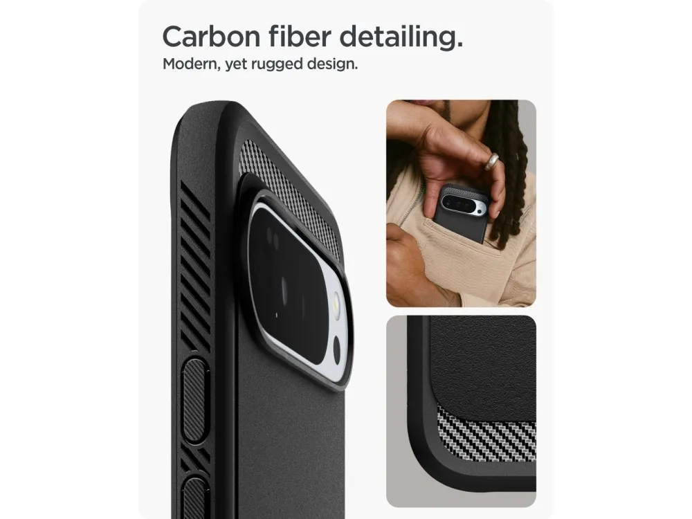 Rugged refined. The Rugged Armor celebrates over a decade of protection with an all-new design for your Pixel. Modern carbon fiber detailing shines sleekly with multi-layered bumper protection on all corners. Now compatible with Pixelsnap to unlock new magnetic accessories for your Pixel. Always be ready to take a punch.Spigen ACS09721. Case type: Cover, Brand compatibility: Google, Compatibility: Pixel 10 Pro XL, Maximum screen size: 17.3 cm (6.8"), Surface coloration: Pattern, Product colour: Black