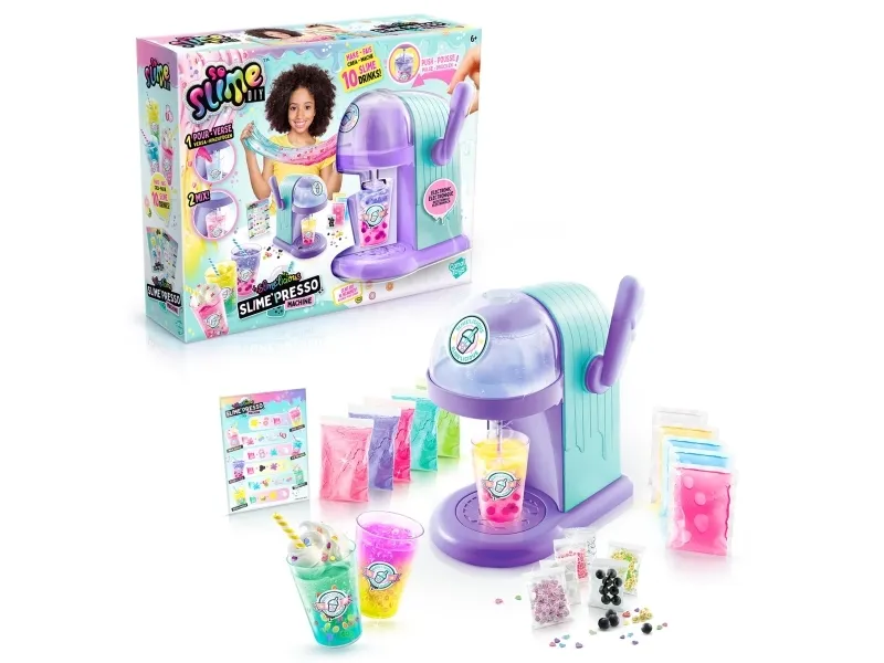 Ha det skoj med den här elektriska slimemixern. Den unika designen gör att den ser ut som en riktig kaffemaskin. Använd mixern för att skapa över 10 olika slimedrinks. Följ recepten eller skapa din egen drink av slime. Det är bara att blanda slimepulver med vatten och sedan tillsätta dekoration och färdiggjort slime. Det är verkligen lätt att skapa något snyggt! Från 6 år.