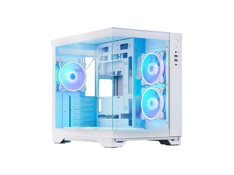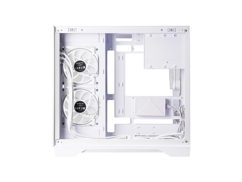 The Chieftec Visio tower chassis combines functionality with style, making it a choice for PC enthusiasts looking to create a sleek and efficient build. With a well-designed cable management system, the interior remains organized, allowing for optimal airflow and cooling performance. The tempered-glass windowed side panel showcases the internal components, illuminated by customizable ARGB lighting from the included PWM connector hub.