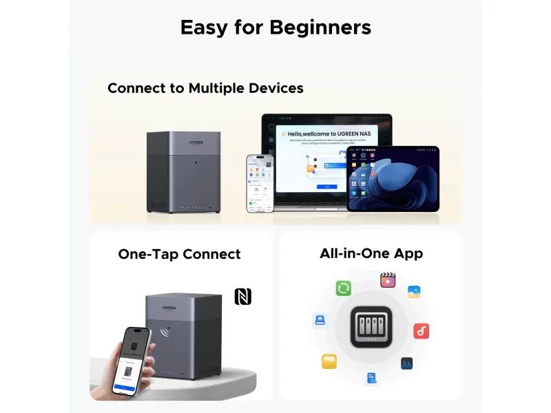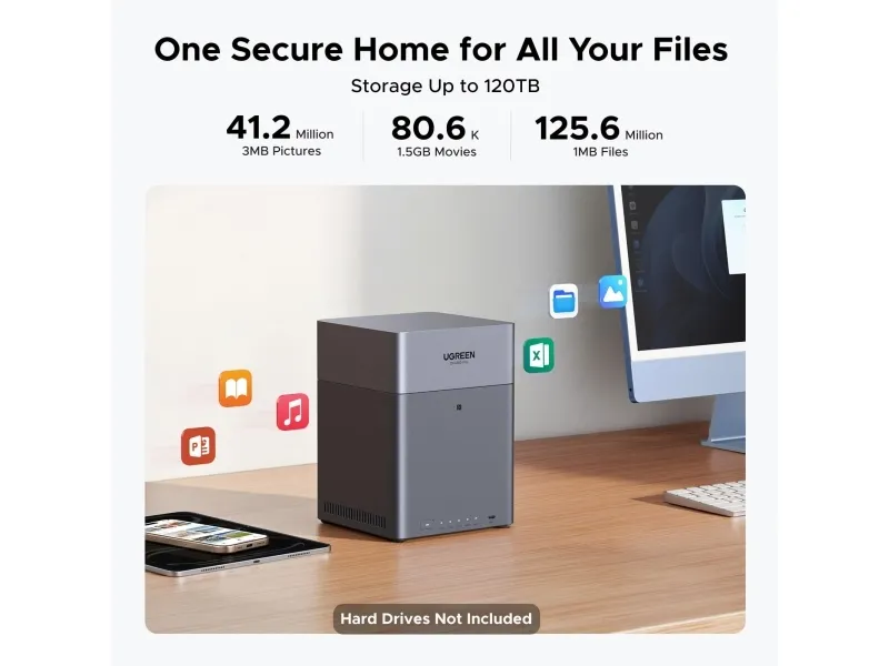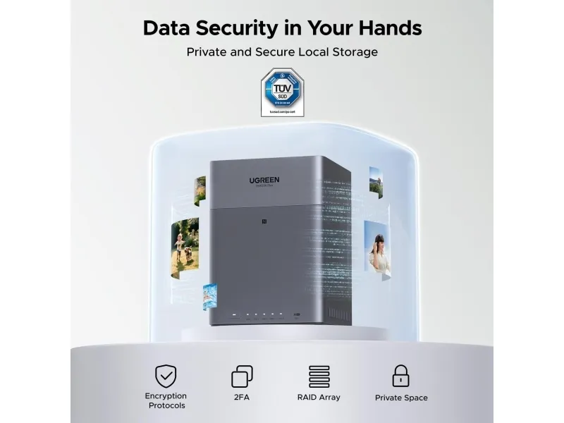 The UGREEN NASync DH4300 Plus offers an efficient solution for network storage needs. With support for up to 120 TB of storage, this NAS server is built to manage and safeguard your data with multiple RAID configurations including RAID 0, RAID 1, RAID 5, and more, ensuring flexibility and reliability in your storage options. Features such as automatic backups and an AI Photo Album enhance your data management experience, while a powerful 8-core processor and 4 GB of LPDDR4X RAM ensure smooth performance even under heavy workloads.
