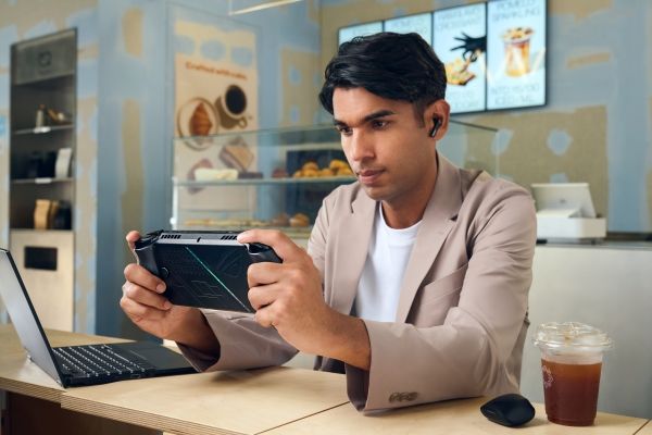 AI-brusreduceringsteknik, Smart Amplifier-teknik, inbyggd mikrofonarray, Wi-Fi-anslutning med tre band, ASUS Aura Sync-teknik, Hi-Res-ljudcertifiering, texturerade grepp