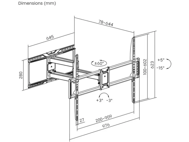 VESA support: 200x100, 200x200, 200x300, 300x200, 200x400, 400x200, 300x300, 300x400, 400x300, 600x200, 500x300, 400x400, 600x300, 500x400, 400x600, 600x400, 700x400, 800x400, 600x600, 800x500, 800x600, 900x600