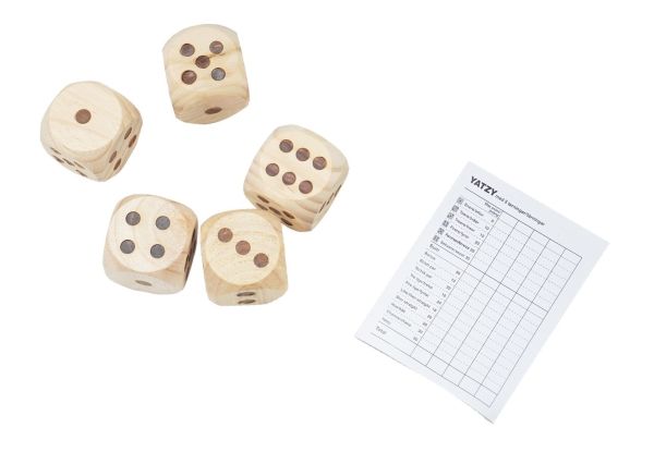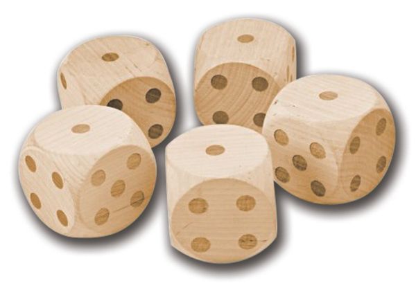 Tärningspel i storformat till trädgården, 5 trätärningar.