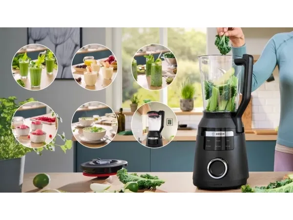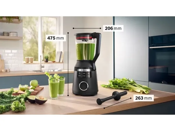 Bosch Serie 6 MMB6654B. Type: Cooking blender, Product colour: Black, Cord length: 0.1 m. Bowl capacity: 2 L, Rotational speed (max): 45000 RPM, Noise level: 90 dB. Blending bowl material: Tritan, Housing material: Plastic. Power: 1800 W, Power source: AC, AC input voltage: 220 - 240 V. Width: 206 mm, Depth: 206 mm, Height: 475 mm