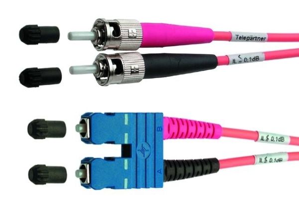 FO patch cords are mainly used in patch panels or for connection between outlets and terminals. Duplex cables with duplex connectors prevent from changing transmission and reception lines. The quality of connectors and fibres used determines to a great degree the insertion loss and reflexion performance of the transmission line. Factory- assembled FO patch cables guarantee exceptional optical and mechanical characteristics and a long lifetime due to use of optimized components and of a constantly controlled manufacturing process. Flame-retardant and halogen-free cable sheath material provides low environmental load.