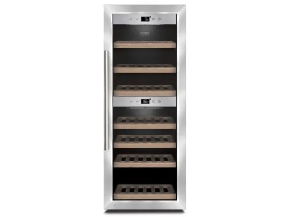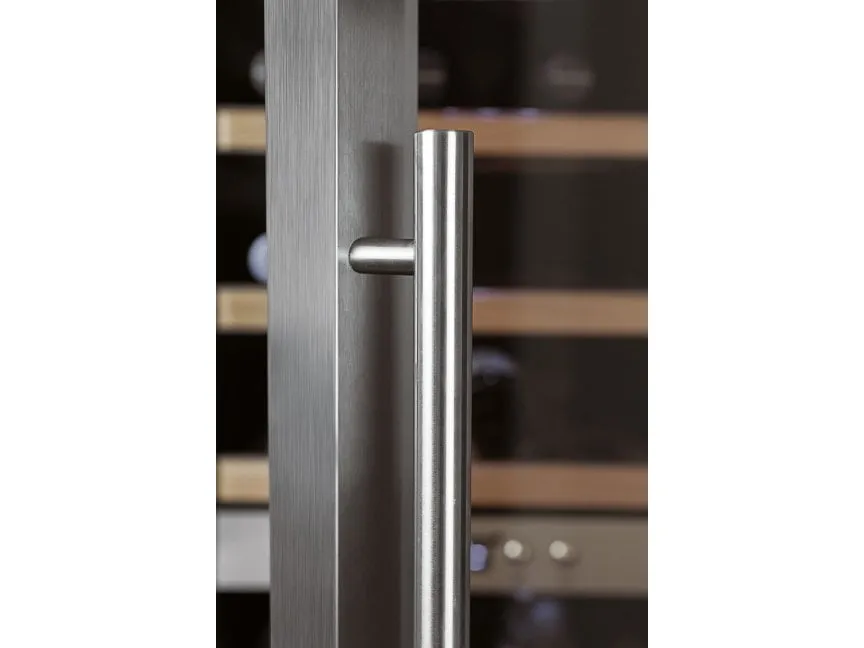 Den angivna flaskkapaciteten beräknas med en flaska Bordeaux som standard och utan hyllor i skåpet. Dvs. att det faktiska antalet flaskor som skåpet kan rymma, med hyllor monterade, kommer att vara mindre än den mängd som anges i produktspecifikationerna.