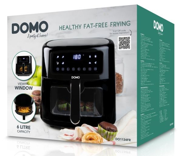 DOMO DO1134FR varmluftsfritös utan fett/oljefri 1500 W, 6 L, svart