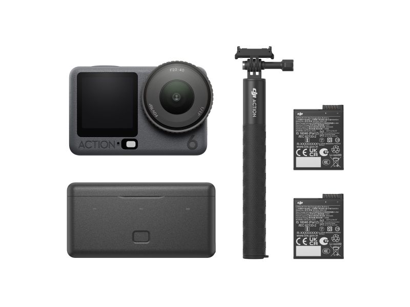 The DJI Osmo Action 6 is a mountable action camera designed for capturing immersive moments in a variety of environments. It features a robust build, rated IP68 for waterproofing and freeze-proof capabilities, allowing it to dive up to 20 m underwater, making it suitable for adventurous activities. With a wide-angle lens offering a maximum view angle of 155 degrees and an aperture range of f/2.0-4.0, this camera captures sharp details and vibrant scenes, whether during action-packed moments or serene nature shots. The built-in 2.5-inch touch screen enhances user experience, enabling easy navigation and control over features including slow motion and D-Log Gamma mode for professional video quality in 4K resolution at 3840 x 2160 pixels.