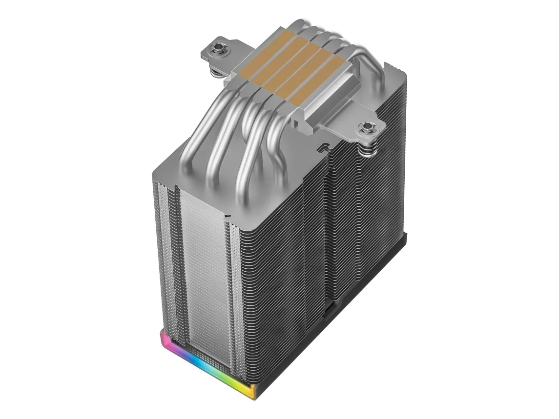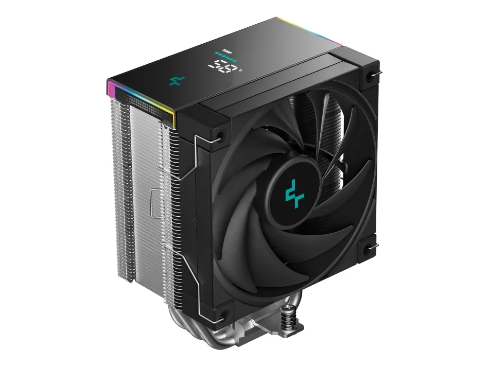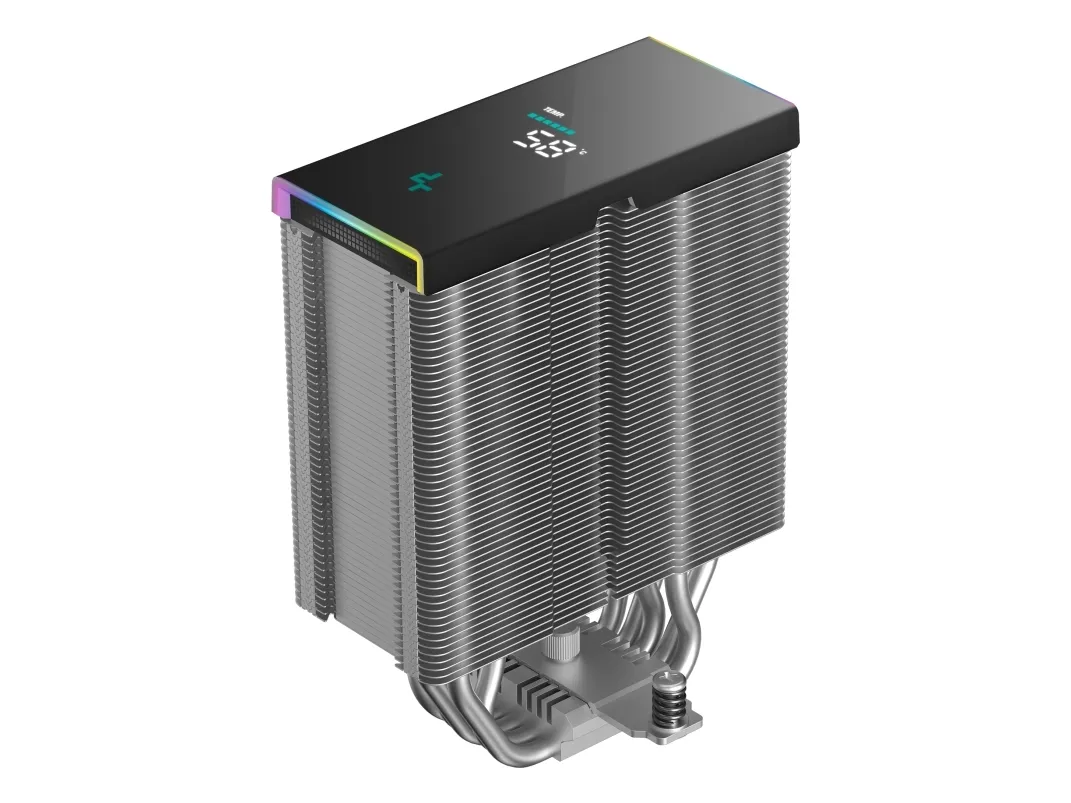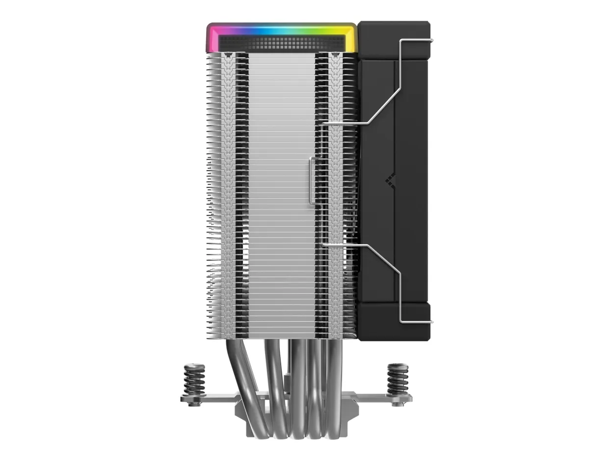 In addition to its functional performance, the cooler features ARGB LED illumination and is compatible with multiple RGB software platforms such as Razer Chroma RGB, ASUS Aura Sync, MSI Mystic Light Sync, ASRock Polychrome RGB, and Gigabyte RGB Fusion. The inclusion of a real-time status screen allows users to monitor their cooler's performance, adding usability to this efficient cooling solution.