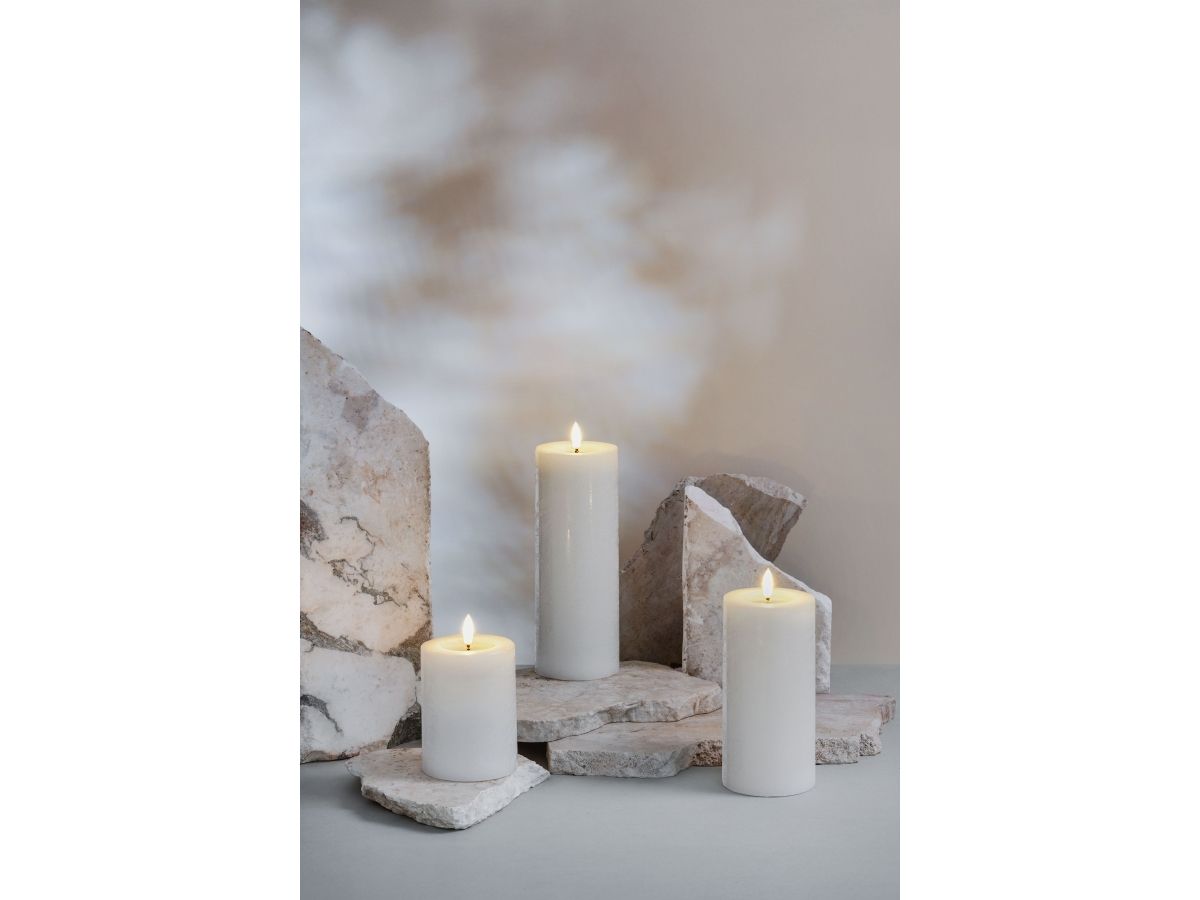 Moods & More LED Rustikt blockljus i vitt med smälteffekt - Ø 7,4 cm x H 20 cm