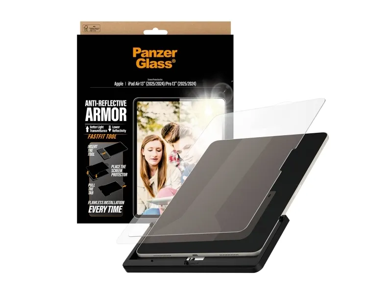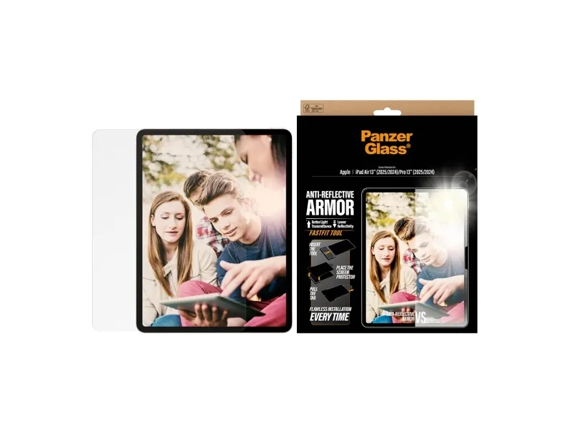 PanzerGlass - Skärmskydd för surfplatta - anti-reflekterande rustning, med FASTFIT-verktyg, ultrabred passform - glas - för Apple 13-inch iPad Air M2 Wi-Fi, M2 Wi-Fi + Cellular, M3 Wi-Fi, M3 Wi-Fi + Cellular
