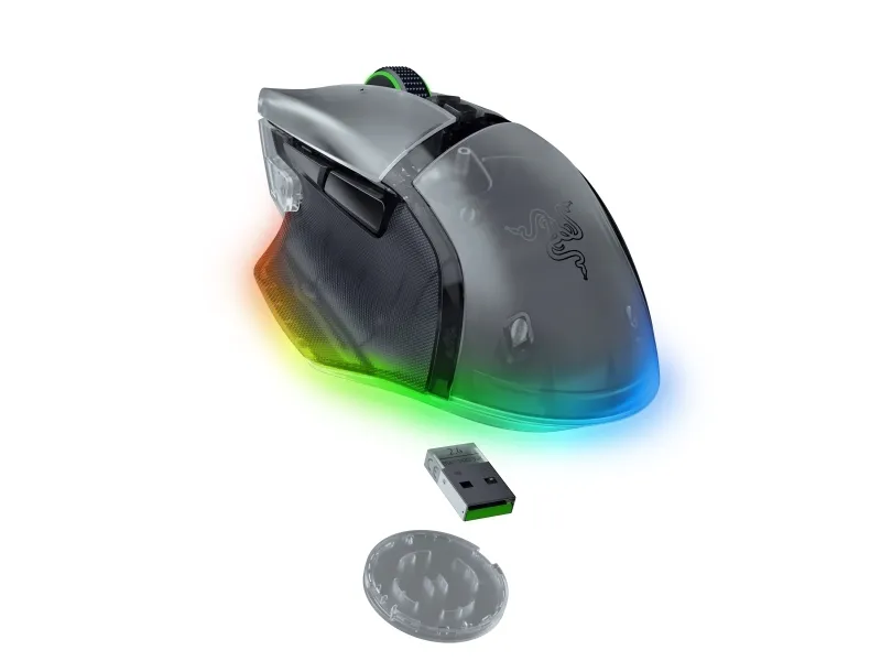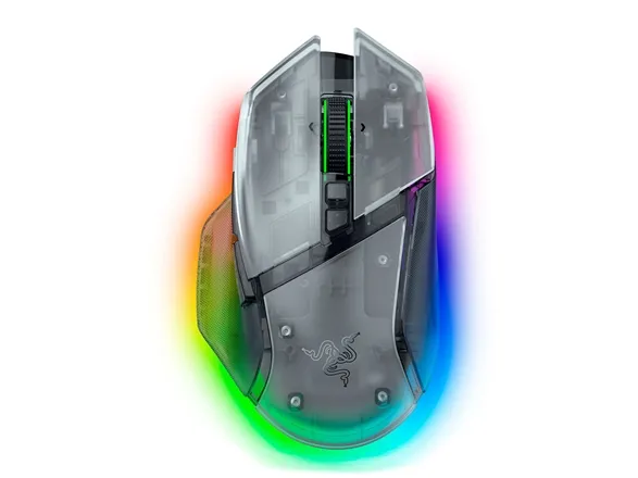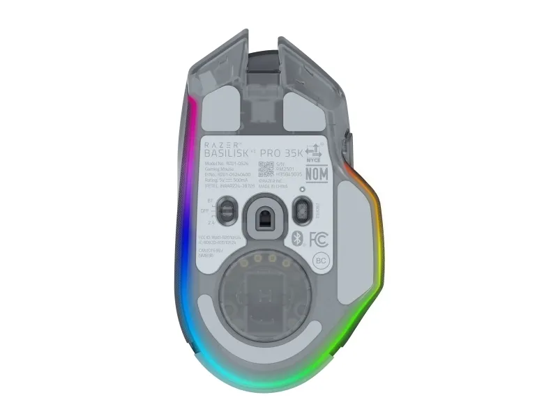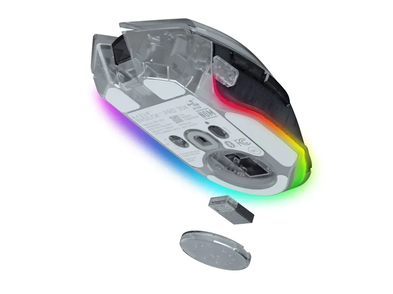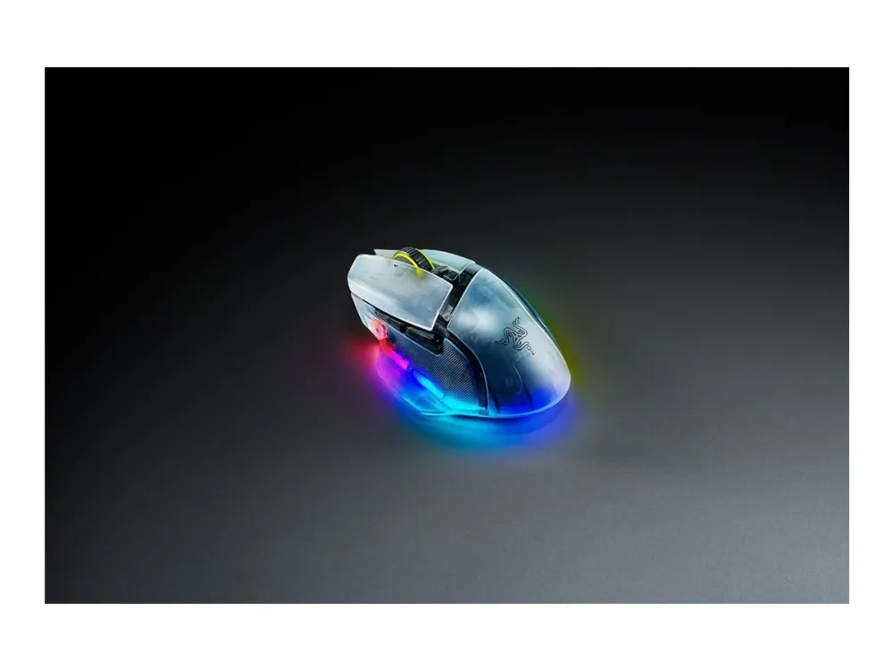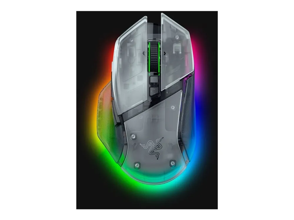 Razer Basilisk V3 pro 35K - Phantom White Edition - mus - högerhänt - optisk - 11 knappar - trådlös, kabelansluten - Bluetooth, USB-C, 2.4 GHz - vit
