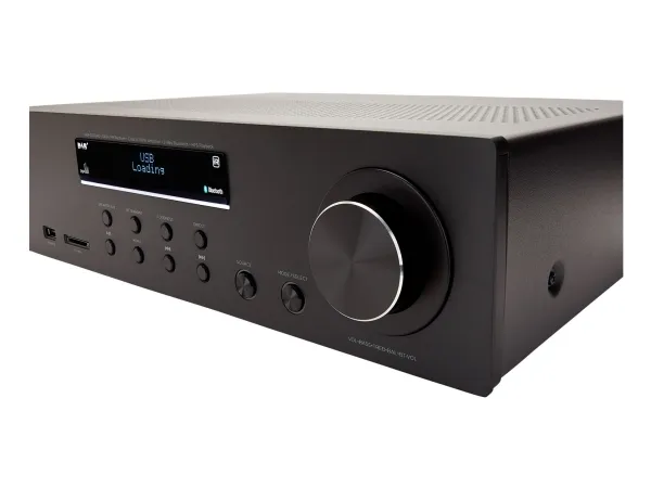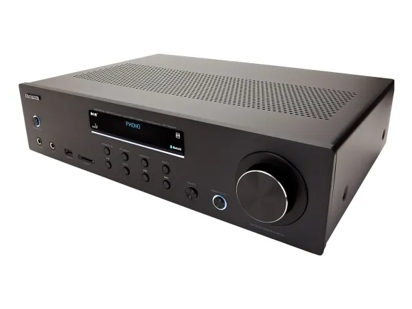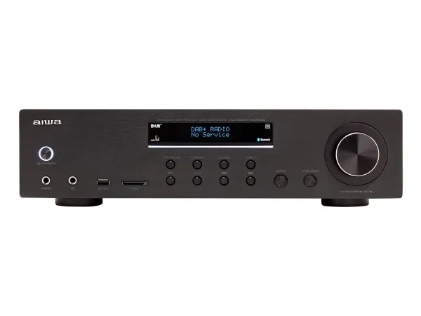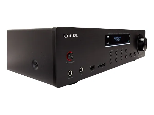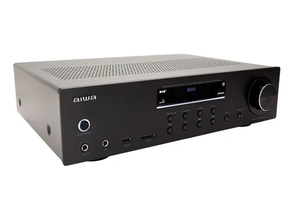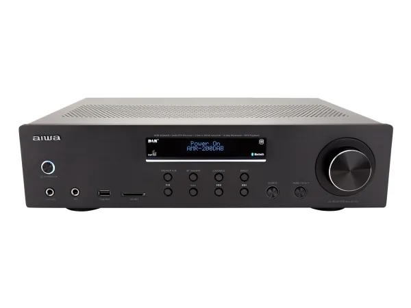 The Aiwa AMR-200DAB/BK delivers 200W of powerful, clear sound (2x 100W RMS @4 Ohms, 0.1% THD). Key features include a phono input with RIAA EQ, Bluetooth v5.0, DAB+ and FM-RDS radio, and customizable sound settings. Enjoy versatile connectivity with multiple audio inputs and gold-plated speaker terminals. Perfect for audiophiles seeking superior audio quality.Aiwa AMR-200DAB/BK. Audio output channels: 2.0 channels, Peak power per channel: 100 W, Total Harmonic Distortion (THD): 0.1%. Speakers connectivity type: RCA, Headphone connectivity: 6.3 mm, Speaker selector: A / B. Power source type: AC. Width: 290 mm, Depth: 100 mm, Height: 430 mm. Package weight: 9.12 kg
