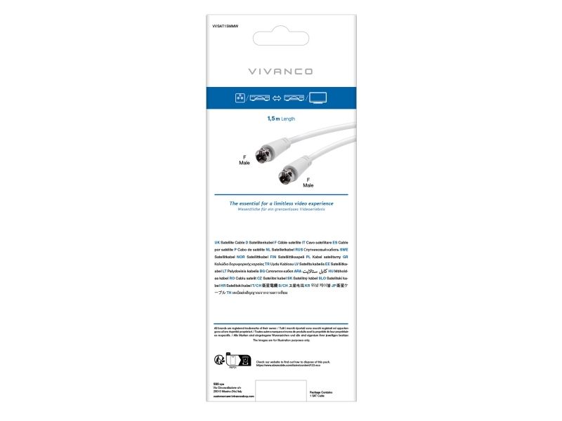 Vivanco VVSAT15MMW, 1,5 m, F-typ, F-typ, Vit