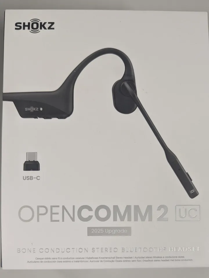 [OUTLET] - SHOKZ OpenComm2 UC - 2025 Upgrade - headset - öppet öra - montering bakom nacken - Bluetooth - trådlös - USB-C via Bluetooth-adapter - svart - Zoomcertifierad