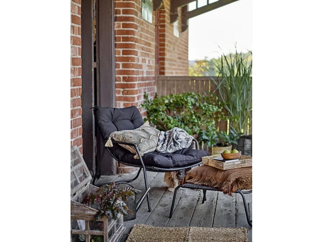 We recommend placing the furniture in covered, dry area to reduce exposure to the weather. The cover is water repellent. The color may fade over time if placed in direct sunlight. Comes with feet cap.