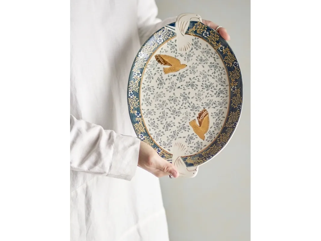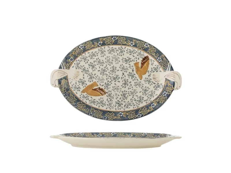 BLOOMINGVILLE Hezha serveringsbricka, blå, stengods
