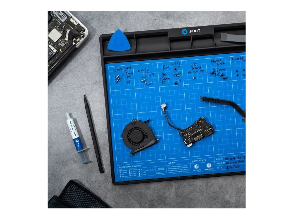 IFixit FixMat är ett oumbärligt verktyg för alla som arbetar med reparation eller montering av elektronik. Denna magnetiska matta har en torkskrivbar yta där användaren enkelt kan skriva anteckningar och hålla reda på komponenter. Den ESD-säkra konstruktionen skyddar känsliga elektroniska delar från statisk elektricitet under reparationer, medan den halkfria skumunderlaget ger stabilitet och säkerställer att mattan ligger på plats. Oavsett om det gäller professionella eller privata projekt är denna matta en praktisk hjälpreda som förbättrar organisationen och effektiviteten.