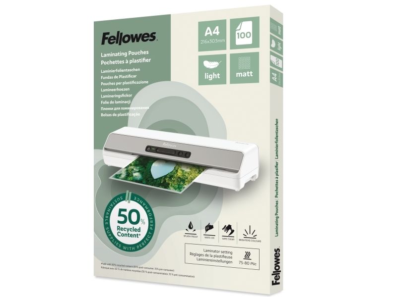 Fellowes lamineringsfickor 50% återvunnen A4 Light 100 st mat