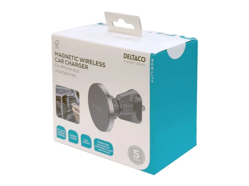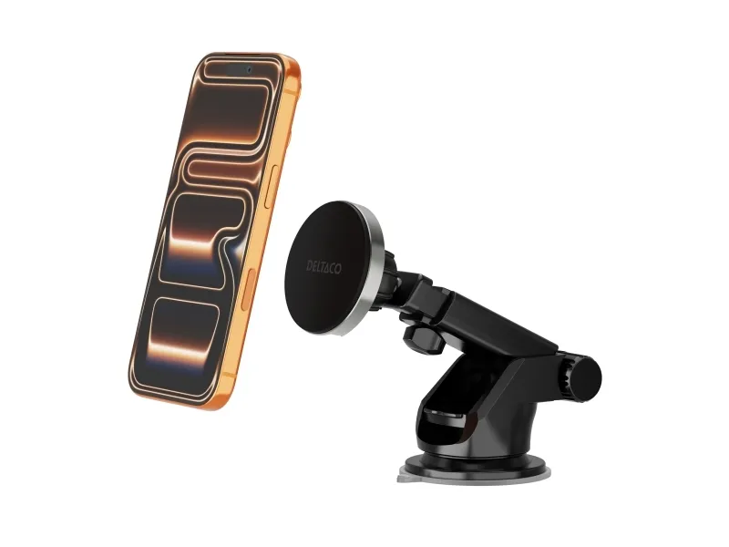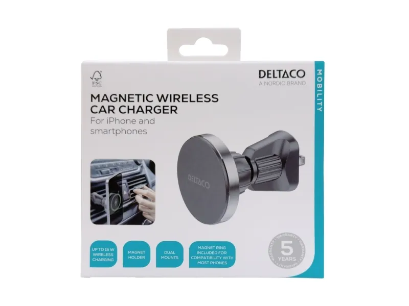 DELTACO - Trådlös laddningshållare för bil - magnetisk - 15 Watt - Fast Charge - svart