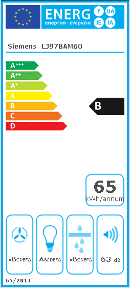 Siemens iQ500 LJ97BAM60, 459 m³/h, Frånluft/recirkulerande, B, A, B, 63 dB