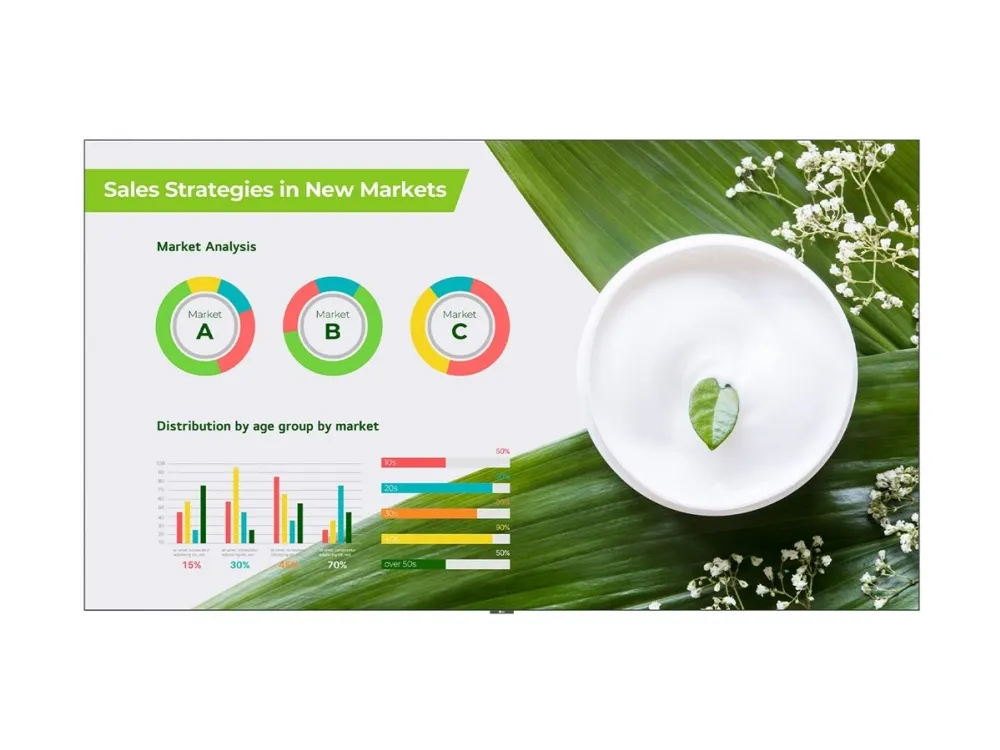 LG LAPA163-GF är en kommersiell skärmlösning som är utformad för att möta olika professionella behov. Med en diagonal storlek på 163 tum och en upplösning på 1920 x 1080 ger denna LED-videovägg tydliga, livfulla bilder som förhöjer alla miljöer. Skärmen är utrustad med 144 skärmar konfigurerade i en 12x12-layout, idealisk för digital skyltning i butiker, företag och evenemangslokaler. Tekniken garanterar en betraktningsvinkel på 150 grader, och bildkontrastförhållandet på 3000:1 ger rika färger och klara bilder. Utöver sin visuella prestanda har LAPA163-GF ett integrerat ljudsystem med 18 watt uteffekt från två inbyggda högtalare, vilket förbättrar multimediaupplevelsen. Anslutningsmöjligheterna är många, med flera HDMI-portar, USB-anslutningar och digital ljudutgång för att passa olika enheter. Skärmen stöder Wi-Fi, LAN och erbjuder funktioner som LG One:Quick Share, vilket gör det enkelt att presentera och dela innehåll smidigt mellan kompatibla enheter. Denna skärm är utformad för hållbarhet och tillförlitlighet och uppfyller ett flertal standarder, vilket säkerställer att den uppfyller kraven för kommersiell användning.