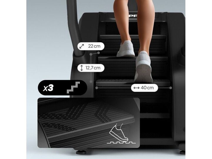 Med 25 hastighetsnivåer, solida steg och avancerad datorfunktionalitet kan du enkelt anpassa din träning efter din nivå – oavsett om du vill bränna kalorier, förbättra din kondition eller bygga styrka.