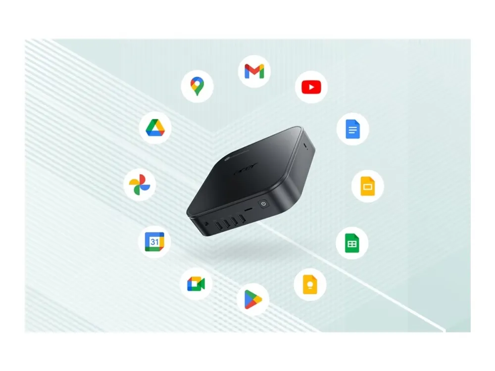 Denna mini-PC är kompakt och fullspäckad med moderna nätverksfunktioner, inklusive Wi-Fi 6E och Bluetooth 5.3. Det inbyggda stödet för dubbel streaming säkerställer sömlös anslutning för ett brett utbud av enheter. Acer Chromebox CXI6 har också två M.2-expansionsplatser och en praktisk kortläsare för extra minnesstöd. Med sin effektiva strömförbrukning är denna Chromebox väl lämpad för både hem- och kontorsmiljöer, vilket gör den till en flexibel lösning för olika datorbehov.