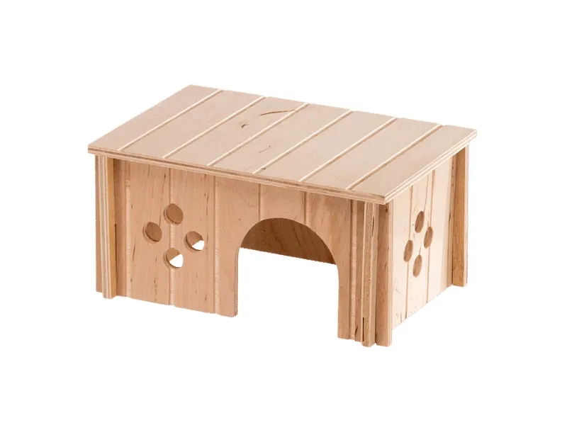 Hyggeligt hus til marsvin Grundet størrelsen er dette hus ideelt til marsvin og rotter. Huset er designet med fladt tag og lufthuller der sikre god luftcirkulation i det lille hus.