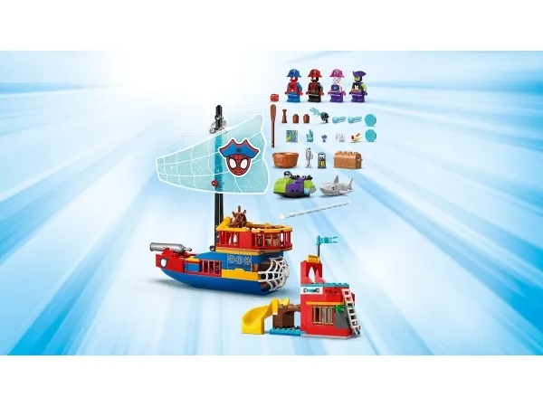 Sätt kurs mot mot fantasifulla lekar ombord på Team Spideys piratskepp (11208), en kreativ byggleksak med Spidey, Green Goblin, Ghost-Spider och Miles "Spin" Morales. Detta byggset är ett utmärkt sätt för pojkar, flickor och barn från 4 år att utveckla färdigheter samtidigt som de utforskar det roliga livet till sjöss och på Spider Island.