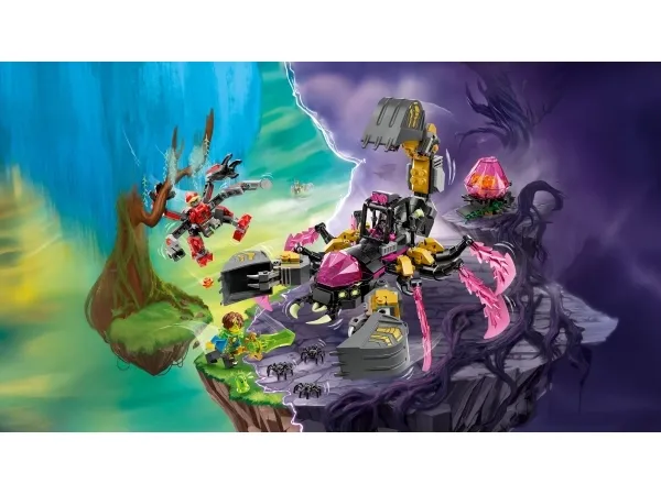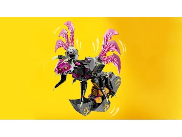 Den fantasifulla skorpionen är en skräckfigur med 6 ben och klor, kanoner och en krossande grävskopa, medan den biomekaniska getingen är ett smidigt bevingat rovdjur med en giftig grävargadd och kanoner. Setet innehåller även minifigurerna Mateo, Cooper och Arika för att uppmuntra till låtsaslekar, och Mateo har ett grönt samlarsvärd. Det finns också en Z-Blob-figur och 3 spindlar, plus ett rosa diamantägg som korrumperats av Mardrömmarnas kejsare och innehåller en orange skattvarelse.