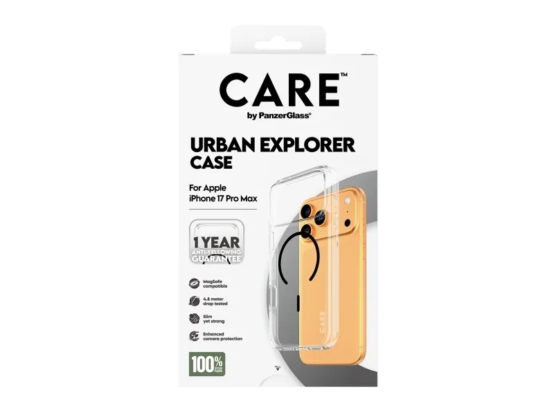 Our top pick. Call sign bombshell. Phenomenal protection designed for urban exploration and adventure. Every angle and corner has been drop tested at 4.8 meters. The Urban Explorer case, made from recycled plastic, is designed for wireless charging and MagSafe compatibility. And it comes with our 1 Year Anti-Yellowing guarantee – no questions asked.  This stylishly slim yet tough protective case is your perfect urban lifestyle partner. For training hard and running fast, and everything in between. Any place, any surface, this case is crafted to handle the roughest treatment imaginable. It even includes enhanced camera protection, so your selfies and photos are never at risk.   DARE TO CARE CARE is a playful, protective international tech and lifestyle brand featuring a range of products created using the highest quality materials and influenced by fashion, art, and music. We care about people and the world we live in. We care about sustainability and self-expression. And we care about tech and extending its lifetime. So protect your tech in style and show the world you CARE.