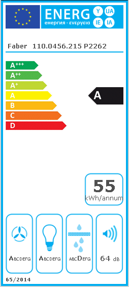 Five models, like in any family, share certain common components, which, at the same time, are also their distinctive features. An elegant, ultra-slim panel lights up all along its edge, becoming the “beating heart” of every model. In-Light model, a built-in hood designed for wall unit installation is equipped by the extraction perimeter which reduces perceived noise by 25% to ensure optimum effectiveness. The air accelerates as it passes into the small aspirating surface of the panel, then immediately decelerates inside and is ejected without the need for any particular pressure. The powerful Evo Motor, moreover, with its geometries that have been optimised by applying the latest studies of fluid dynamics, guarantees better results in terms of energy efficiency and reduced noise.FABER S.p.A. In-Light Inox A70 EVO+. Maximum extraction power: 635 m³/h, Type of extraction: Ducted, Fluid dynamic efficiency class: A. Type: Built-in, Product colour: Stainless steel, Housing material: Stainless steel. Grease filter type: Aluminium. Bulb power: 3 W, Lighting efficiency (LE): 29 lux/W. Energy efficiency class: A, Annual energy consumption: 55 kWh, Energy efficiency scale: A+++ to D