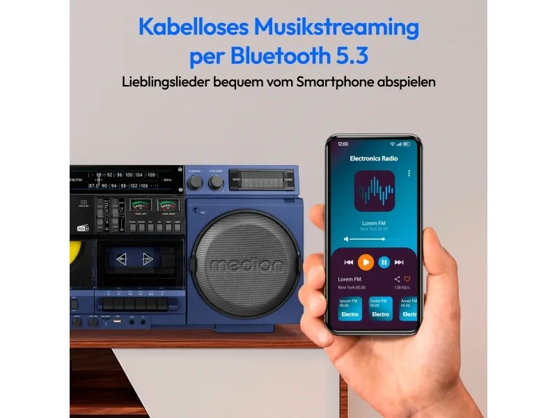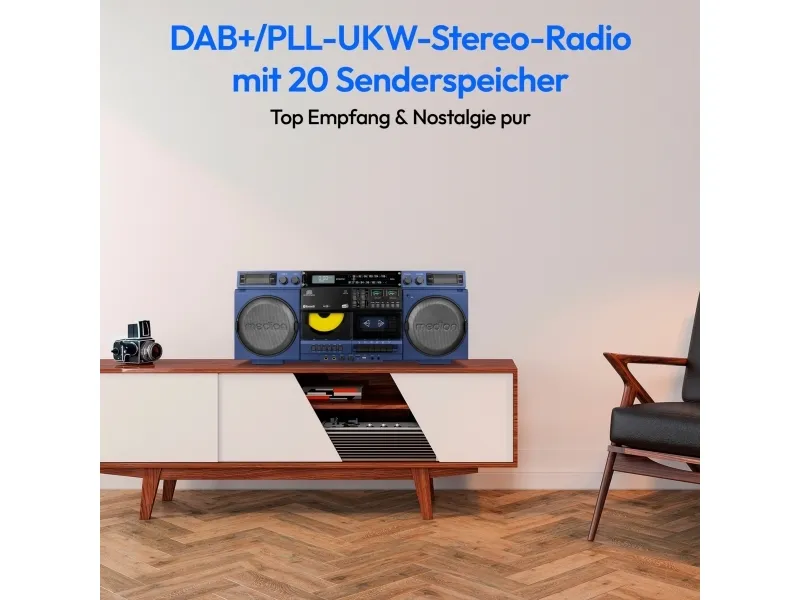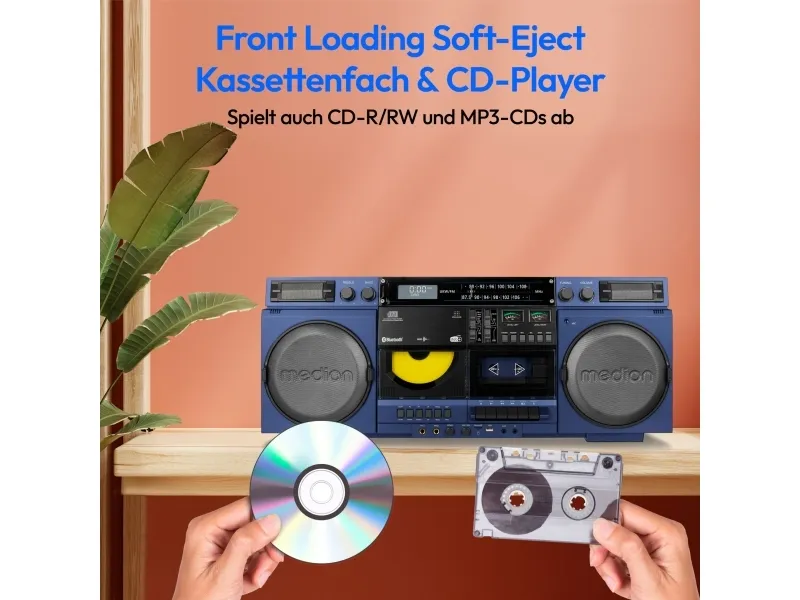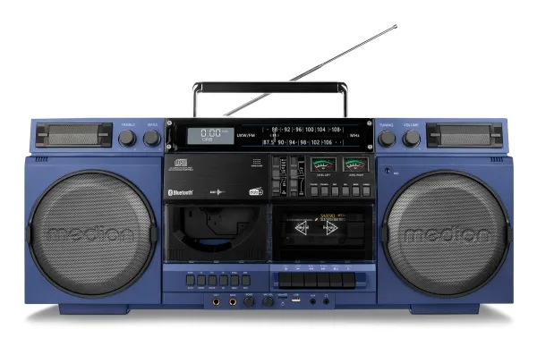 MEDION LIFE P66538. Product colour: Blue, Number of optical discs: 1 discs, Disc loading type: Front. RMS rated power: 20 W, Speaker type: 2-way. Supported radio bands: DAB+, PLL. Display type: LCD. Bluetooth range: 10 m