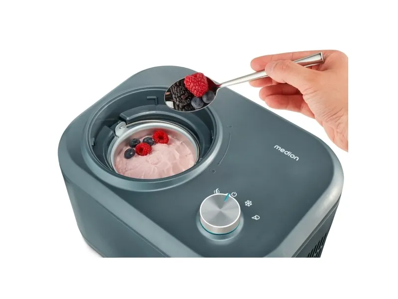 MEDION MD 10169. Product type: Compressor ice cream maker, Bowl capacity: 1 L, Number of bowls: 1 bowls. Width: 357 mm, Depth: 260 mm, Height: 220 mm. Power: 100 W