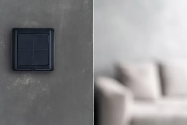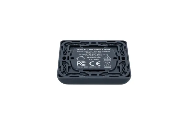 The Shelly BLU Wall Switch 4 ZB DK is a battery-powered wall switch with four buttons, designed for Danish wall-mounting standards. It comes with a frame and double-sided tape for direct surface installation, and the frame can be removed for integration into existing switch programs. The switch can control lighting, blinds, garage doors, scenes, or other automations. The included CR2032 battery provides a lifespan of more than 5 years. Each button supports up to four actions: single press, double press, triple press, and long press. The device supports full local pairing with Shelly relays, dimmers, and shutter controllers – no app required. For advanced scenarios, it can be connected to Shelly Smart Control. The Shelly BLU Wall Switch 4 ZB DK uses Bluetooth for fast response and includes built-in Zigbee for integration with third-party Zigbee platforms. All Shelly BLU devices require a gateway for network access. Any Shelly Pro, Gen3, Gen4 device, or the Shelly BLU USB Gateway can serve this purpose. If you already have a Shelly device on your Wi-Fi, it automatically acts as a gateway for BLU devices. Features. Compatible with Home Assistant, Homey, and systems supporting BTHome, BLE technology for fast response, Control of relays, dimmers, blinds, and scenes, Operates stand-alone without Wi-Fi, Encrypted wireless communication, Range: approx. 10 m indoors / 30 m outdoors