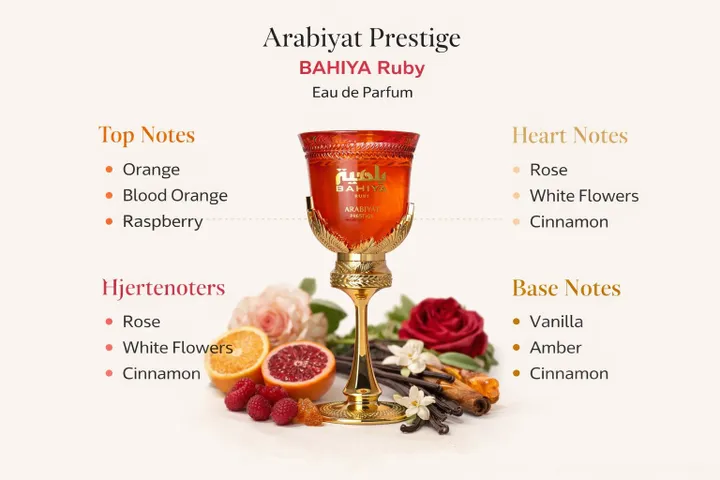 Arabiyat Prestige Bahiya Ruby är en lyxig och feminin Eau de Parfum som kombinerar fruktig friskhet med varm orientalisk sensualitet.