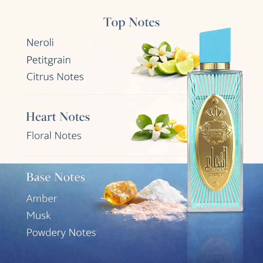 | Doftnoter Toppnoter: Neroli, petitgrain, citrusnoter Mellannoter: Blomnoter Basnoter: Bärnsten, mysk, pudriga noter |