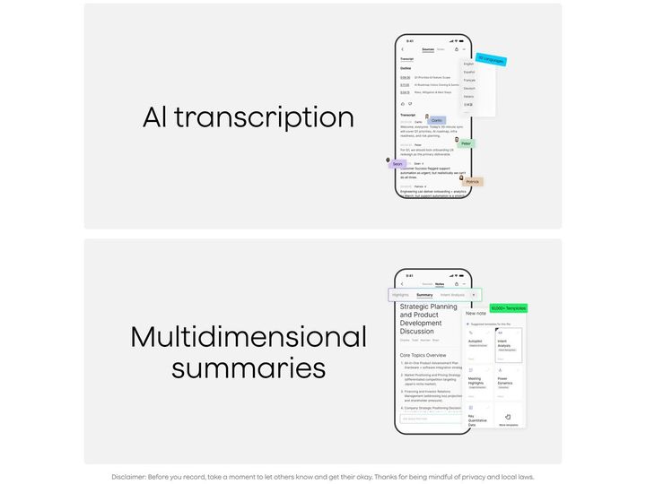• Avancerad AI-driven inspelning och transkribering på 112+ språk med hjälp av de senaste AI-modellerna