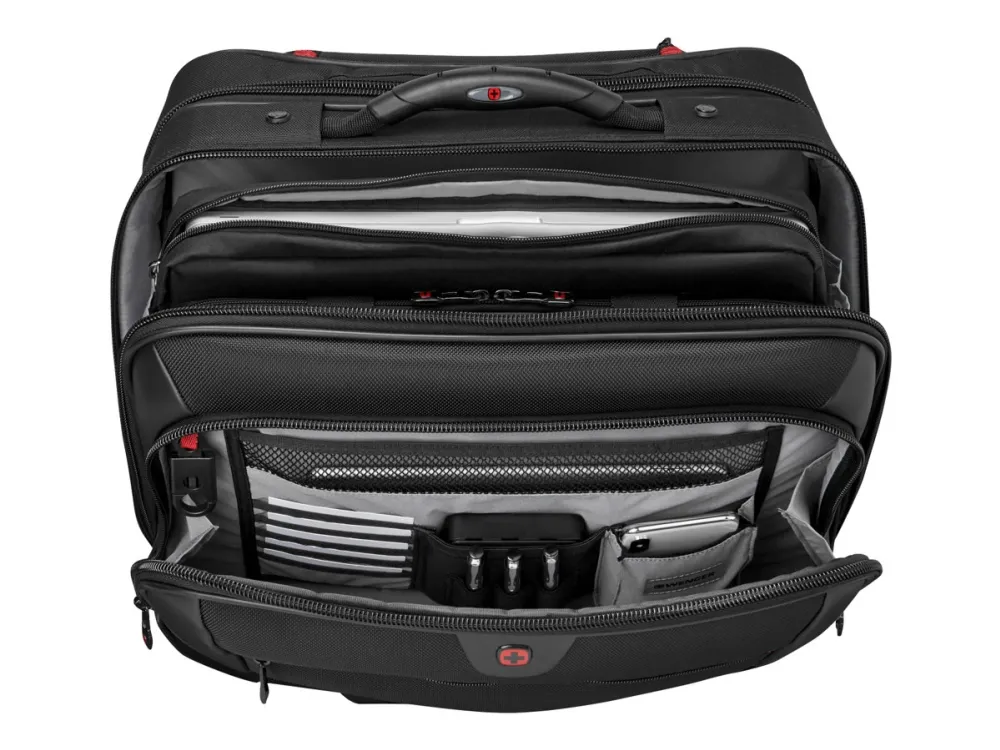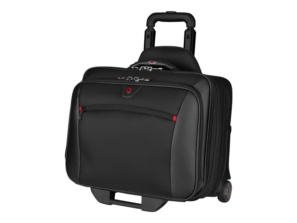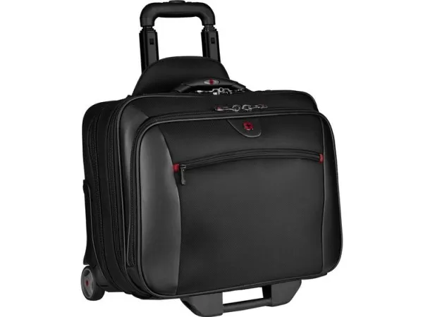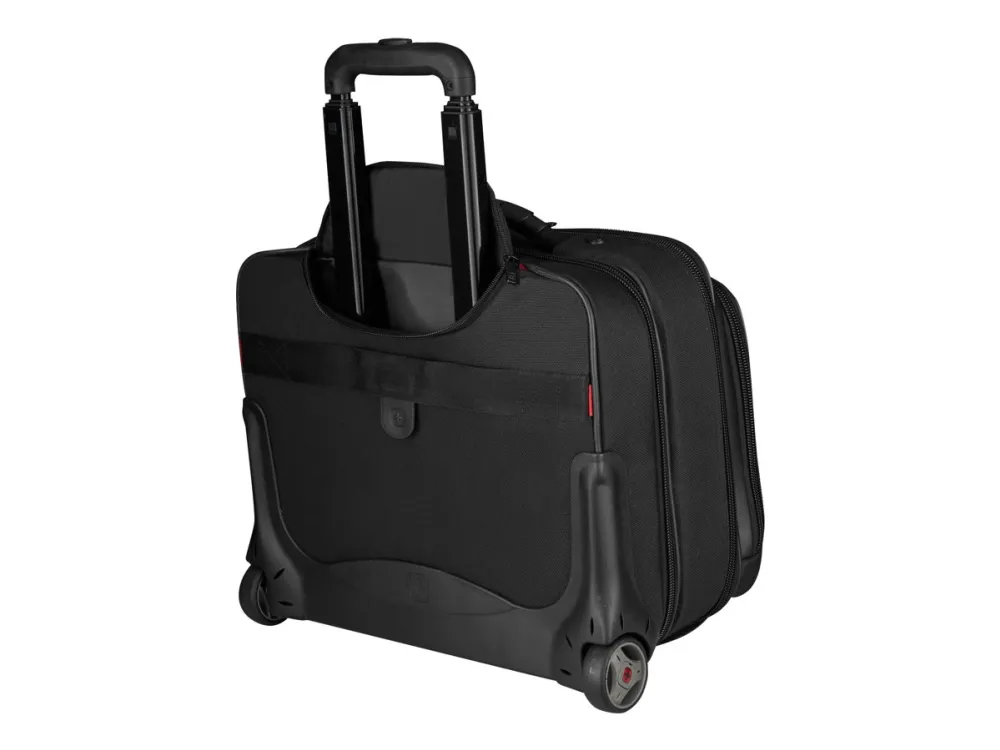The Wenger POTOMAC 2-Piece Business Set with Comp-U-Roller is designed to meet the needs of the modern professional. This comprehensive carrying solution includes a notebook carrying case and a 15.4" laptop case, ensuring that your devices are always protected and ready for business. The set features lockable zips, padded interiors, and zippered compartments for enhanced security and protection of your devices. With the convenience of a telescopic handle and wheels, it offers effortless mobility, making it an ideal choice for professionals on-the-go. Whether you're commuting to the office or traveling for business, the Wenger POTOMAC set provides a versatile and secure way to carry your essential devices.