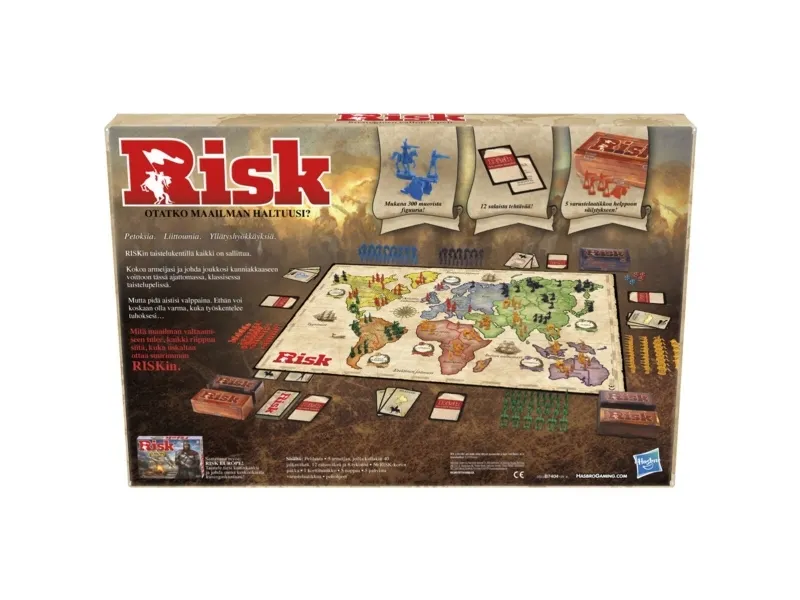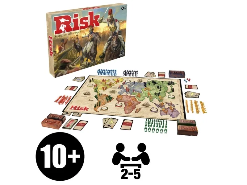 Take over the world in this game of strategic conquest, now with updated figures and improved Mission cards. In Risk, the goal is simple: players aim to conquer their enemies’ territories by building an army, moving their troops in and engaging in battle. Depending on the roll of the dice, a player will either defeat the enemy or be defeated. This exciting game is filled with betrayal, alliances and surprise attacks. On the battlefield, anything goes! Defeat all of the enemy troops in a territory to conquer that territory and get one step closer to global conquest! The player who completes his or her secret mission first – and reveals the Secret Mission card to prove it – wins. Dice and five armies are included in war crates. Hasbro Gaming and all related terms are trademarks of Hasbro.