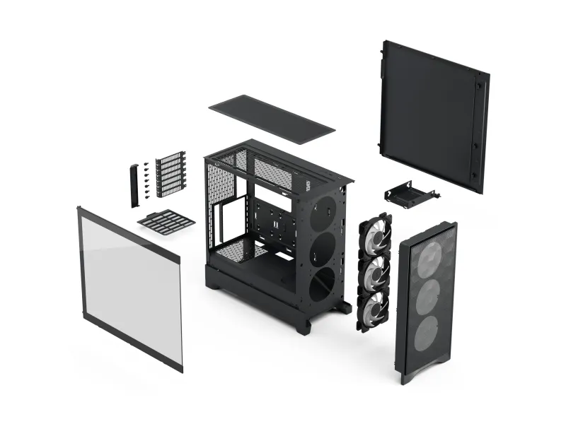 The Fractal Design Pop Air tower chassis offers a blend of functionality and style for modern builds. Its robust design features an efficient cable management system and includes dust filters for the power supply, ensuring that the interior remains clean and organized. This chassis can accommodate various cooling solutions, supporting multiple radiators up to 280 mm in the front panel and 240 mm in the top panel, allowing for thermal performance. Additionally, the chassis supports a maximum video card length of 405 mm and a CPU cooler height of 170 mm, making it versatile for various components. With four internal bays, users can expand their storage effortlessly, while the front panel offers USB and audio connectivity for added convenience. Built from durable steel, the Fractal Design Pop Air is designed without a power supply, which allows for customizable setups. It's ideal for users seeking a balance between aesthetics and performance in a well-designed, spacious tower chassis.