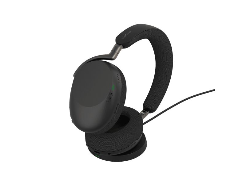 Jabra Evolve3 85 UC - headset - 3,5 mm kontakt, USB-A via Bluetooth-adapter - med trådlös laddningsplatta